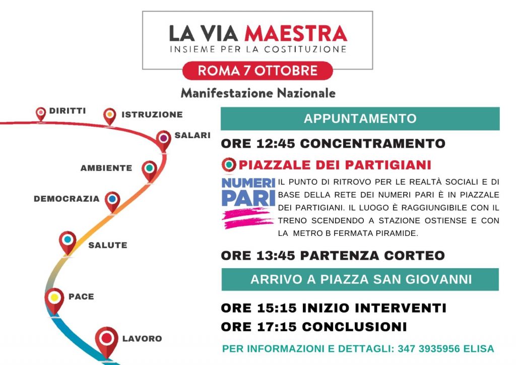 L’assemblea cittadina indetta il 27 settembre nella Casa internazionale delle donne di Roma dalla RETE DEI NUMERI PARI, per coinvolgere il maggior numero possibile di soggetti della società civile – associazioni, coordinamenti, sindacati – sul valore e la necessità della manifestazione nazionale “LA VIA MAESTRA insieme per la Costituzione”, indetta il 7 ottobre a Roma […]