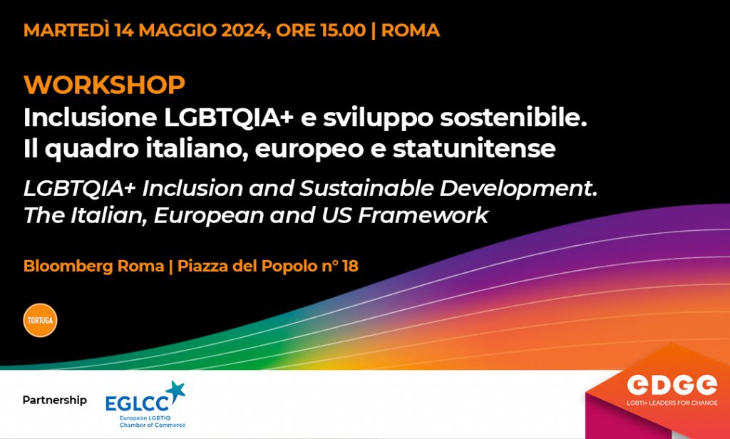 MARTEDÌ 14 MAGGIO 2024, alle ore 15.00 presso la sede di Bloomberg – Roma, (piazza del Popolo n. 18) si svolgerà il workshop “Inclusione LGBTQIA+ e sviluppo sostenibile. Il quadro italiano, europeo e statunitense” nel corso del quale verrà presentato il secondo report economico “Relazione tra inclusione LGBTQIA+ e sviluppo economico locale. Il quadro italiano ed europeo”, appena pubblicato e realizzato da EDGE […]