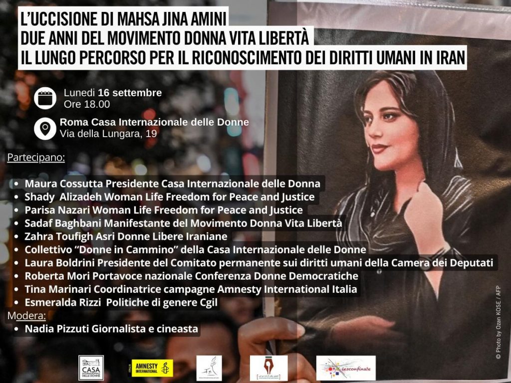 Lunedì 16 settembre alle ore 18.00 sarà ricordata Masha Amini a due anni dalla nascita del movimento Donna Vita Libertà alla Casa internazionale delle donne (via della Lungara 19).