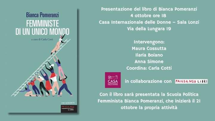 Alla Casa internazionale delle donne (via della Lungara 19) il 4 ottobre, alle ore 18, sarà presentato l’ultimo libro di Bianca Pomeranzi Femministe di un unico mondo.