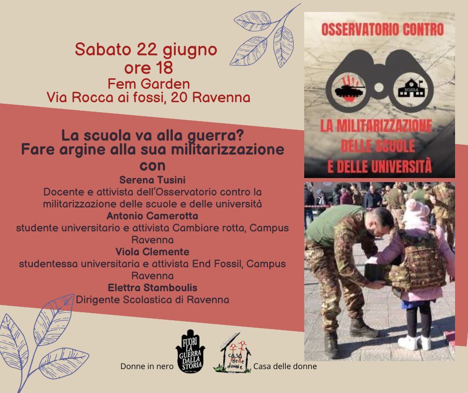 RAVENNA. “La svuola va alla guerra?”, incontro il 22 giugno La redazione 10 Giugno 2024 Leggi Tutto »
