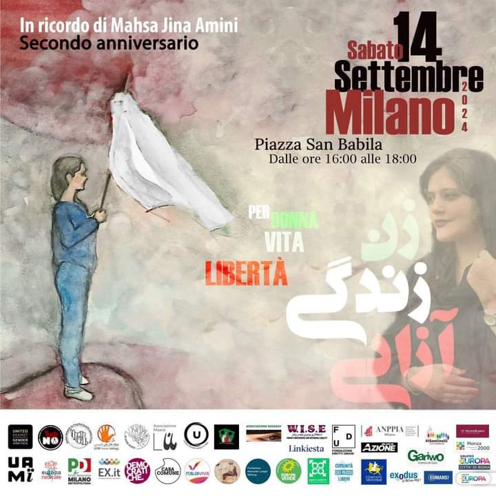 A due anni dalla morte di Mahsa Amini, uccisa dalla polizia morale in Iran, due manifestazioni, a Roma e Milano, la ricorderanno con il movimento iraniano “Donna, Vita, Libertà” sabato 14 settembre alle 16.00. ARima in piazza della Repubblica, a Milano in piazza San Babila.