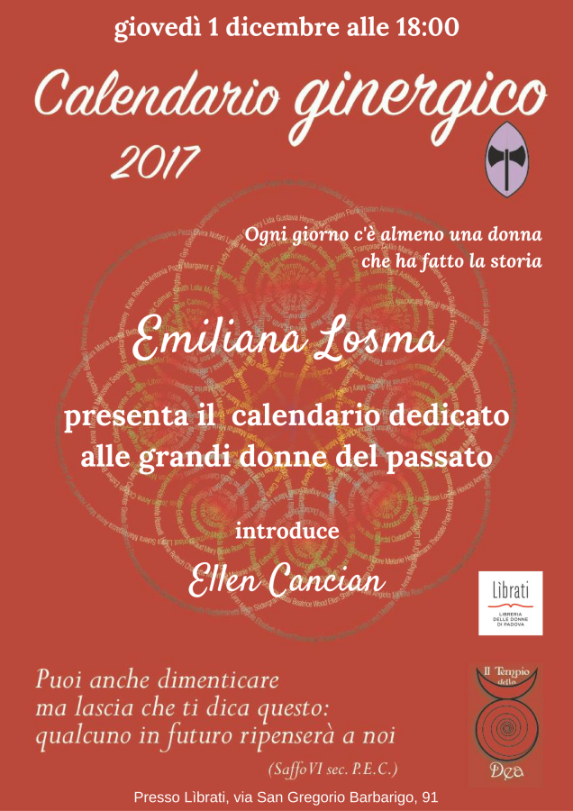 Sarà presente l’ideatrice del calendario Emiliana Losma. Introduce Ellen Cancian.