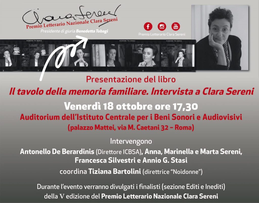 Durante l’evento verranno divulgati i finalisti (sezione Editi e Inediti) della V edizione del Premio Letterario Nazionale Clara Sereni, presidente di giuria Benedetta Tobagi