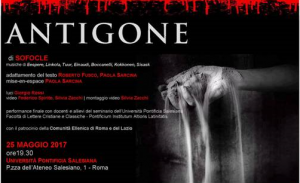 Tredici tra docenti e studenti in scena, provenienti da tre continenti (Europa, Africa ed Asia), hanno ragionato e dialogato sui vari nodi presenti nella tragedia di sofoclea: l’ancestrale conflitto tra la legge di stato, a volte coercitiva e subita da una comunità; l’ordine universale del principio di umanità, che riconosce il valore dell’uomo nella sua complessità di bisogni e desideri, ponendo al centro la legge dell’amore, della comprensione e del perdono; le relazioni tra donne e uomini; i legami intergenerazionali. La traduzione e l’adattamento del testo è il frutto di un lavoro collettivo tra docenti e studenti, coordinato da Roberto Fusco, per portare sul palcoscenico un copione contestualizzato ai giorni nostri. La legge dell’amore di Antigone irrompe nella tragedia moderna dei rifugiati migranti che, in cerca di libertà, muoiono in migliaia nel Mediterraneo, respinti da leggi che non rispettano la vita umana. La figura di Antigone è dunque eccezionale ed attuale, per il messaggio di libertà che porta e per il potere simbolico che il suo gesto ancora oggi evoca. Un gesto che è capace di cambiare il sistema del diritto, quando questo produce leggi che invadono il vissuto personale e non possono essere condivise dalla comunità.