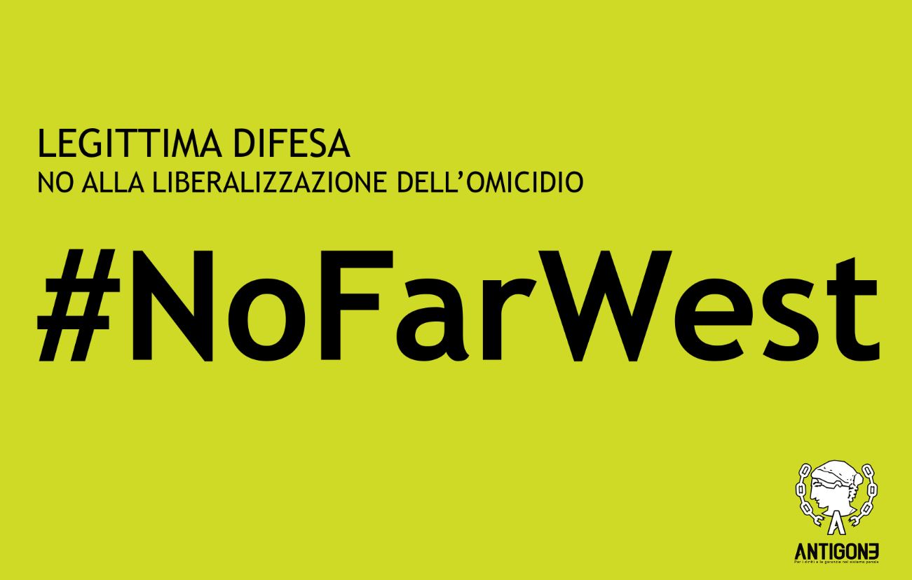Contro la nuova legge sulla legittima difesa, l’Associazione Antigone chiede una mobilitazione capillare e generalizzata. OGGI, 23 ottobre la legge per l’allargamento del regime della legittima difesa inizierà dal Senato il suo iter parlamentare. Questa proposta metterà a rischio la sicurezza, fondandosi sull’assenza totale di bisogni reali di prevenzione criminale.