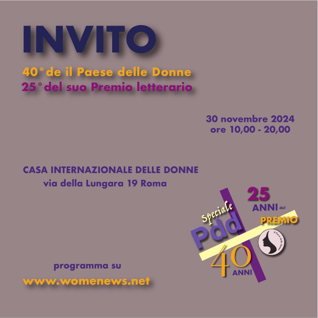 Con l’evento “Il Paese delle Donne (1985-2024). Un’impresa femminista” alla Casa internazionale delle donne di Roma (via della Lungara, 19), il 30 novembre 2024 festeggiamo i 40 anni del “Paese delle Donne” e i 25 anni del “Premio di scrittura femminile” con la cerimonia di assegnazione del XXV Premio. Sarà una giornata ricca di attività […]