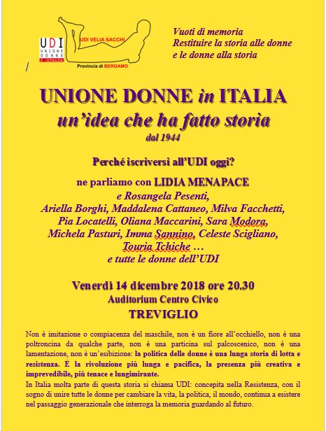 TREVIGLIO (Bergamo) – Quella dell’UDI: UNA LUNGA STORIA – “L’universo è fatto di storie, non di atomi”- Muriel Rukeyser