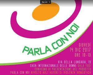 Giovedì 14 dicembre alla Casa Internazionale delle Donne dalle ore 10 alle 13 Casa Internazionale delle Donne  Convegno di Presentazione  del Progetto PARLA CON NOI sportello rivolto agli autori di violenza domestica.